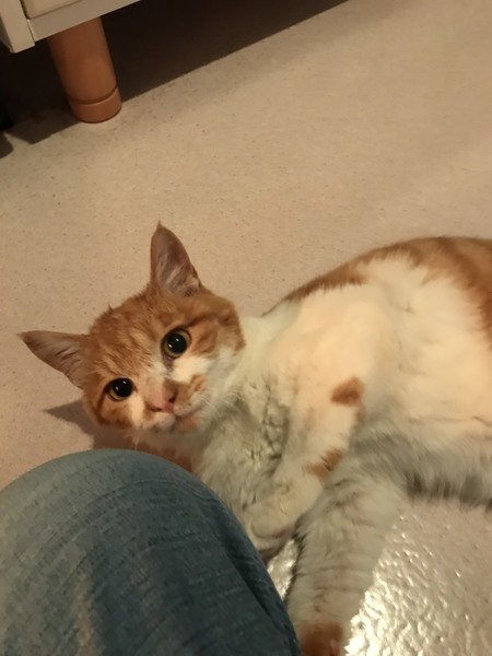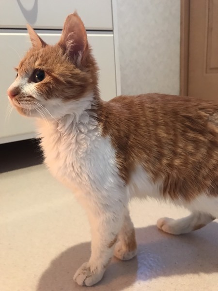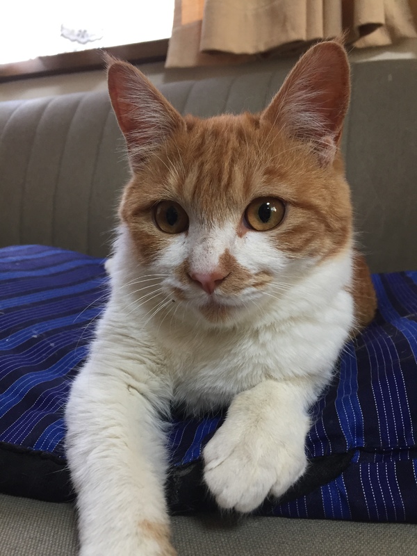 | 特徴(性格など) | 茶トラのハチワレ おとなしい男の子です。 とても人慣れしており、撫でてやると甘えて膝に乗ってきます。 親兄弟猫とある程度まで育ったらしく、甘噛みも強く噛んだりしません。 健康状態も良好です。 用意した猫砂トイレでキチンとウンチ、オシッコをでき、他で粗相した事が有りません。 11/26追記:本日三種混合ワクチンを接種しました。(里親さんにはワクチン接種の明細もお渡しいたします) 12/18追記:本日2回目のワクチン(定着ワクチン)を接種しました。 |