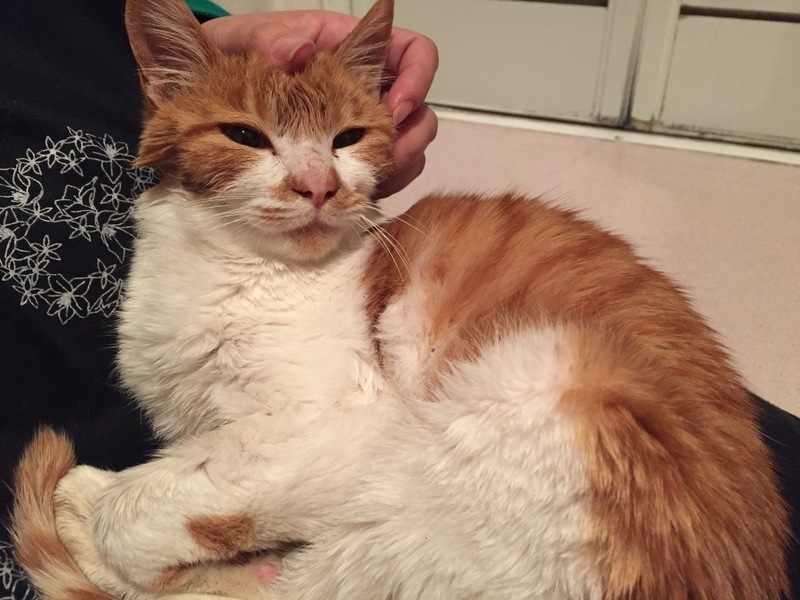 | 里親募集する理由 | 自宅付近でネズミ捕りシートのトリモチでベタベタになって現れたので、保護しました。すぐに動物病院にかかり血液検査、検便、検温していただき、エイズ、白血病共に陰性、寄生虫無し、ノミ無し(目視検査の為念のためレボリューション処置)血液成分検査も健康状態良好でした(里親さんには検査結果もお渡しいたします) 全身に付着していた粘着物もサラダ油と小麦粉、シャンプーを3回に渡り処置して現在は綺麗に除去できました。 一部固まってしまいどうしても溶けない部分は毛と一緒にカットして除去しましたので、ほっぺと尻尾、お腹の辺りの毛が少しだけ虎刈りになっています。 当方で飼う事も考えたのですが、既に先住猫が三匹おり正直難しい状況です。 |