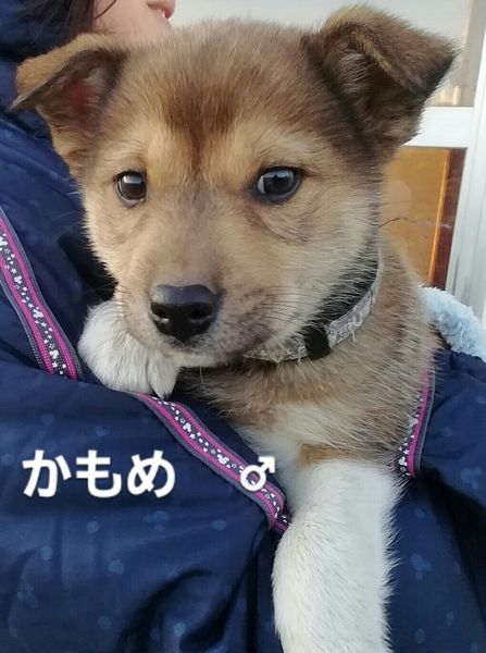 | 里親募集する理由 | 10月9日、浜中町役場から保護した5匹兄弟のうちの1匹です (2匹は飼い主さんが決まっております) 倉庫の裏に捨てられ鳴いているところを近所に住む方が発見し浜中町役場に通報、その後に 浜中町役場から連絡を受け子犬たちを保護しました。 兄弟や他の保護犬、メンバーの愛犬たちと一緒に暮らしていますので、社会化は充分に出来ていると思います。 |