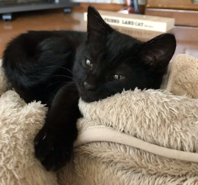 | 特徴(性格など) | 黒猫の3ヵ月の男の子です。 遊び盛り、可愛い盛り。 起きている間は、先住猫達にケンカを売りまくって、追いかけ回して、とにかく元気。 お陰で成猫達からは煙たがれる始末(笑) ブンがいると退屈しません。 楽しく明るく元気なブン。 一家に一匹、オススメです。 |