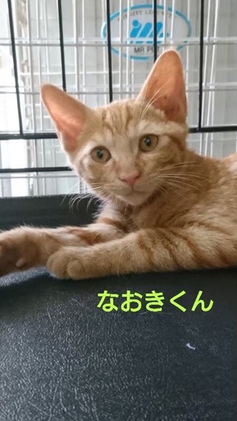 | 特徴(性格など) | 仮名「なおきくん」 ワクチン済み、駆虫済み、ウイルス検査白血病、エイズ共に陰性 茶トラの男の子 おっとりとして甘えん坊な性格です。 人馴れも問題なく猫初心者の方でも飼いやすい子だと思います。 |