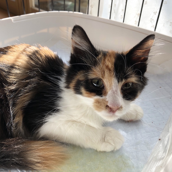 | 特徴(性格など) | 人からエサをもらっていたので、人馴れしています。 とても静かな女の子。預かりさん宅ではだっこしてもおとなしいです |