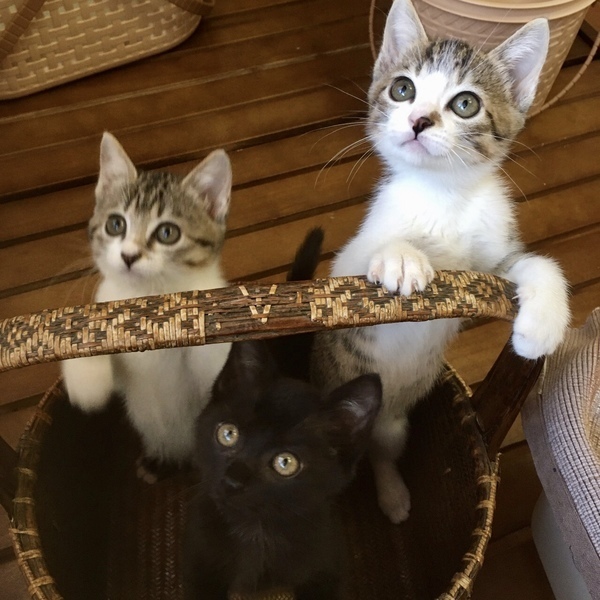 | 特徴(性格など) | ジジちゃん(黒猫メス) 姫ちゃん(キジシロメス) ボスくん(キジシロオス) みんな丸顔で尻尾の長い仲良し美猫兄妹です ボランティアさんが引き取って4週間ほどになりますが日々めきめき成長しています。 はじめはミルクも飲ませてました。こんな小さな時から人間がお世話してますから多分親だと思っていてとても甘えてゴロゴロ言います。 3兄妹一緒だったら本当に嬉しいですが2匹以上で、残った1匹は他の子猫と一緒にしてますので仲良しさんと一緒にお願いしたいです。 同じ時期に保護したキジトラ姉妹(マナ&カナ)是非合わせてご検討ください。 生後2-3ヶ月の子猫は体調の急変がありえます。 必ずしも猫の飼育経験は要りませんが、 毎日しっかり体重の変化を記録し、便の状態などで早め早めに受診をすること、それが可能な職場であったりご家族などの協力体制であって、医療費もそれなりにかかる可能性もありますが、そうした環境が整っているかどうかを確認させていただきます。 基本条件も必ずご確認ください。 ※成長に伴い健康面では安定してきます。小さい子は確かに可愛いですがすぐに大きくなります。共働きでお忙しい方には是非生後4-5ヶ月以上の猫をお迎えいただきたいと思っております。 |