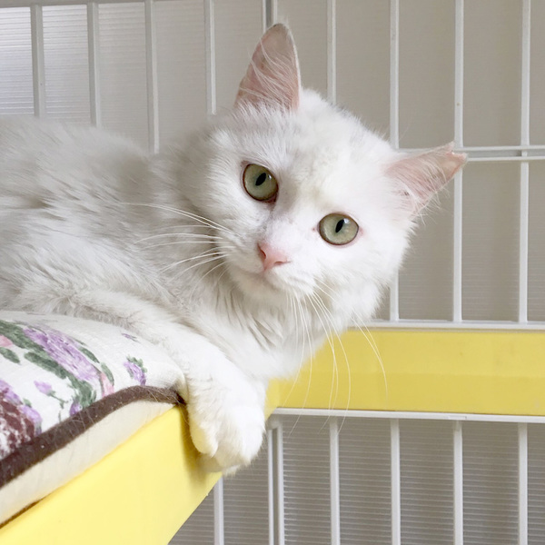 | 特徴(性格など) | 推定生年月日:2016~2019年頃 毛色:白 尻尾:長くてフサフサ 真っ白で尻尾がフサフサの美猫、雪乃さん。 空腹のうえ怪我を負いながらも必死に生きてきた、芯の強さを秘めています。 また、とても子煩悩で、保護された子猫達に対し、自分の子でなくても優しく舐めてあげたり、 深い愛情を注いでくれる、とても優しい女性です。 落ち着いた性格で、猫じゃらしで飛びまわって遊ぶより、 キャットタワーなどの高い所で静かに過ごす方が好きなタイプです。 人には少し警戒心が残っていて、ちゅーるは手から食べてくれますが、 撫でなでは、人によって許してもらえたり、優しくたしなめられたり(笑)。 今はまだ、自分からスリゴロと甘えたりはしないものの、 少しずつ距離を縮めようと人慣れ修行中です。 雪乃さんのペースに合わせて、ゆっくり家族になってくださると嬉しいです♪ 子猫は勿論、大人の猫とも上手につきあえるので、先住猫さんがいるご家庭でも大丈夫だと思います。 雪乃さん掲載ブログ https://ameblo.jp/naoofjapan/entry-12549033669.html 保護されたときの様子 https://ameblo.jp/naoofjapan/entry-12462852589.html https://ameblo.jp/naoofjapan/entry-12489236356.html ☆不妊去勢手術済 ☆ワクチン済 ☆ノミダニ取り済 ☆駆虫済 ☆マイクロチップ挿入済 ☆トイレしつけ済 ☆ウイルス検査 エイズ(ー)、白血病(ー) |