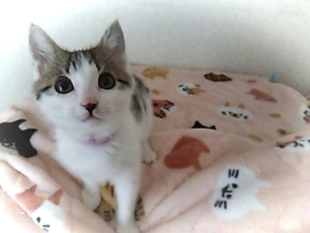 | 特徴(性格など) | お顔の模様が良く似ているのですが 背中の模様が 縦模様と 横模様で そこで 見分けています。 元気いっぱい、体重が約1キロになりました(12/2現在) 今は 兄弟で 高い所にも行けるようになり おもちゃで遊んだり 電池が切れて ドームハウスの中ではなく 屋根の上で仲良く寝たり 過酷なお外ではなく 暖かい部屋で 過ごしています。 3匹中 1匹の牛柄ちゃんは 我が道をゆく!ような性格なので 先住ちゃんのいる おうちに ウィルス検査とワクチン済みましたら トライアル予定です (12/23決定) |