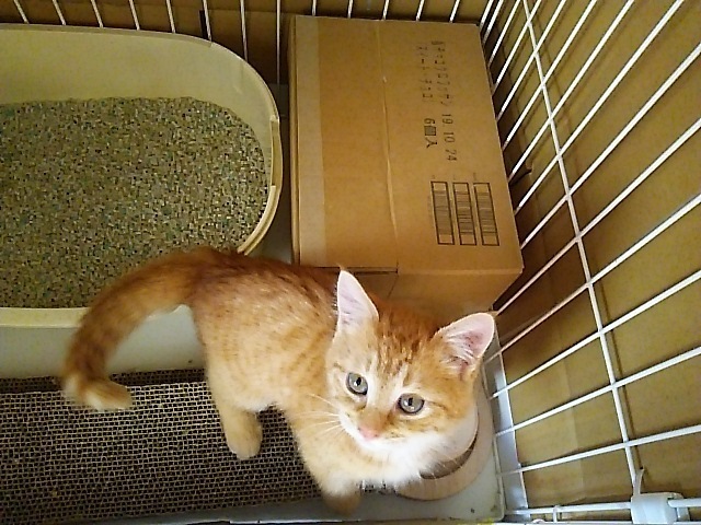 | 特徴(性格など) | 顎から 首にかけて白い茶トラです。 保護当時は 涙目でしたが 2回の塗り薬で完治しました。 元気すぎて 写真が撮れません(笑) 猫社会を知らないようで 動く手にあま噛みがあります。 幼少期のみの行動なのか不明ですが 改善しつつあるので 継続して躾中です。 |