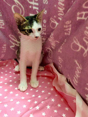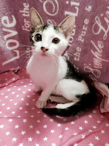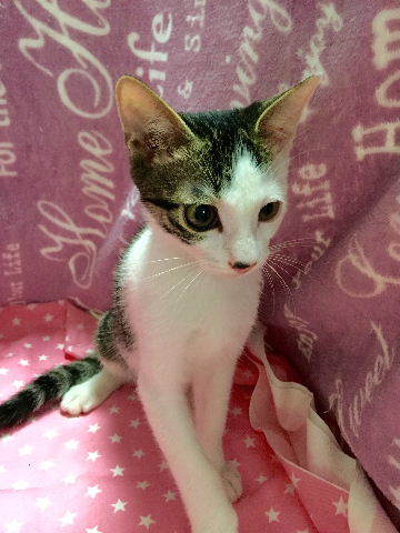 | 特徴(性格など) | 体は小さいですが、元気いっぱいで同年代の子ととじゃれてます。動きが素早いので人が歩くときは注意が必要なほど。今はいきなり抱っこするとなんや~と遊びたいのに~という顔をされます。体調も良くなってきました。 |