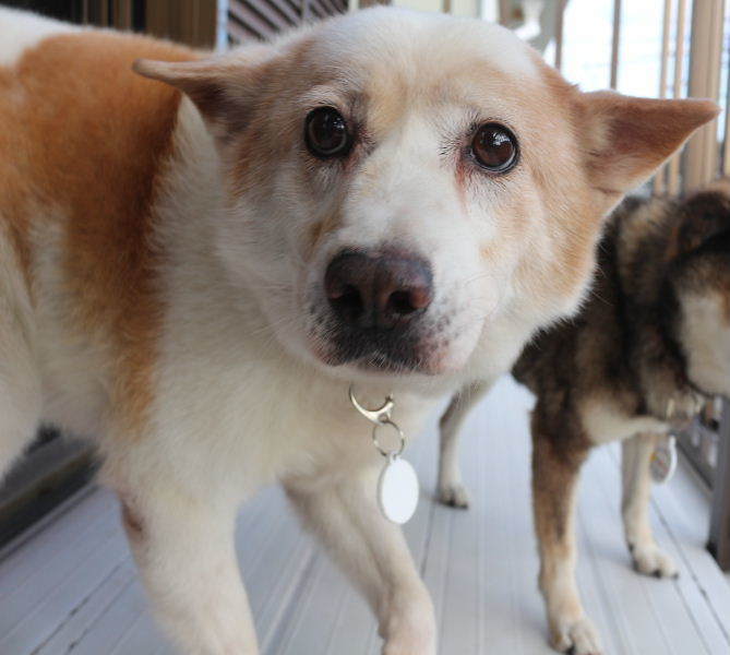 | 特徴(性格など) | MIXの『寵(めぐ)』です。 (ちばわんHP掲載番号No. 3994)←申込時は必ず犬の名前とこの番号を記載してください。 【毛色】白・茶 【体重】14.54kg 【人馴れ】問題なし 【状態】フィラリア(-)、マイクロチップ装着済、ワクチン接種済、狂犬病予防接種済、検便(-)ノミ・・ダニ駆除済 【性格・その他】 白地に茶色のブチの入ったおっとりした女の子です。 普段はまったりと寝ていますが、人の動きに合わせて起き上がり、ちょこちょこついて来ます。実は甘えん坊でグリグリ撫でてもらうのが大好きです。 触られる瞬間だけビクッとするので、怖い思いをした経験があるのかもしれませんが、それでも人を慕い甘える穏やかで優しい子です。抱っこや仰向けにされることは嫌がりますが、ゆっくり優しく接することで段々に慣れると思います。 他の犬にあまり興味はなく、争うこともありません。 お散歩の足取りは軽く、とても楽しそうに歩きます。 排泄は基本的には外派ですが、室内トイレもたまに使うことがあります。 移動当初、別室にいた時は人恋しくてかなり鳴きましたが、同室で暮らすようになってからは一声も鳴きません。人が大好きですので、お留守番の少ないお宅が向いています。 引き続きの室内飼育で、フィラリア予防やワクチン接種などの定期的健康管理、脱走・逸走への細心の注意と住居等の脱走防止対策を必ずお約束していただける関東圏内のご家庭で、終生家族の一員として大切にしてくださる方からのお問い合わせをお待ちしています。 【預かり場所】神奈川県三浦郡 【日記】必ず目を通してください チビスケんちの預かり日記Ⅱ(09年6月~) http://chibisukeazukari.blog68.fc2.com/ 「チビスケんち」(インスタグラム) https://www.instagram.com/chibisukehaha/ |