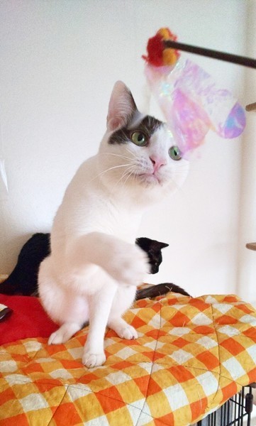 | 特徴(性格など) | 推定生年月日:2018~2019年頃 毛色:キジ白 尻尾:長い 白が多めの綺麗なキジ白の柄に、すっごく美人で可愛らしい顔のあられちゃん。 賢く、頭が切れるタイプで、好奇心旺盛な女の子です。 人がお部屋に入る時も「誰が来たの?」と顔を覗かせるのは、このあられちゃんで、 怖がりなのに、色々なことに興味津々です(笑)。 普段は、同室のお友達と静かにまったり過ごしているあられちゃんですが、遊ぶことが大~~好き♪ 猫じゃらしで遊ぶと小さなハンターに変身し(笑)、驚くほど華麗なジャンプを見せてくれます。 (その真剣な姿が可愛くて、つい、こちらも本気で遊んでしまいます。) 遊びには全力!明るく元気で活発な、キラキラ女子です☆ それと、ご飯も大好き! こんなにスリムな体型で、他の人のご飯も気になっちゃうチョッピリ食いしん坊さんです。 落ち着いた美人さんの顔と、アクティブな遊びの時の顔。 怖がりさんでもあり、好奇心旺盛でちょっぴり気の強い面もあり、 さまざまなギャップも、あられちゃんの魅力のひとつです。 今は、人がまだ少し怖くて、ナデナデや抱っこなどはちょっと苦手ですが、 こんなに一緒に遊んでくれるんですから、きっと、少しずつ距離が縮まると思います。 あられちゃんのペースに合わせて、ゆっくり家族になってくださると嬉しいです。 ☆不妊去勢手術済 ☆ワクチン済 ☆ノミダニ取り済 ☆駆虫済 ☆マイクロチップ挿入済 ☆トイレしつけ済 ☆ウイルス検査 エイズ(ー)、白血病(ー) |