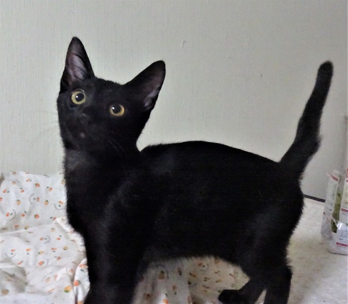 | 特徴(性格など) | 仮名: 大五くん(オス) 毛色: 黒、尻尾ながい 性格: プロレス好きのイケイケ男の子。 小さい子にタックルしては鳴かしています。走ったり、じゃらしで遊んだりするのも大好き。 ご飯の量は多くないけど、キチンと食べます。 でも、今のところは痩せています。 威嚇なく抱っこも出来る子ですが、いつも、今遊ぶから、それどころじゃないんだよね~って感じです。 兄弟の鈴ちゃんと一緒のお家に行けると嬉しいです。 |