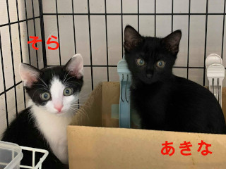 | 特徴(性格など) | ☆★☆★現在お見合い予定がございます☆★☆★ 仮名を『あきな」と言います。 仔猫だけで居たところを保護されました。 胸元にほんの少しの白毛が生えています。 兄妹がいましたが、一足先に良縁に恵まれました。 次はあきなの番です。 仔猫の割には控えめなところがあり、仲良しの『そら』の行動をみて自分も動き出すパターンが出来ていましたが、最近では遠慮なく自分を出せるようにもなってきました。 最初だけ人見知りがあるかもしれません。 安心がわかれば直ぐに、甘々に変身しちゃいます。 猫同士仲良くできる仔です。 フレンドリーな先住猫さんがいるお家や、そらと一緒に♪というご応募も嬉しいです。 【医療処置情報】これから実施のも含まれます *健康チェック *3種混合ワクチン接種 *ウイルス検査実施(FIV.FeLV共に陰性) *検便実施 *駆虫薬投与(レボリューション、ドロンタール) *マイクロチップ装着 *不妊・去勢手術 |