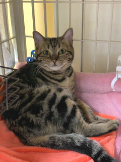 | 特徴(性格など) | ☆★☆★現在お見合い予定がございます☆★☆★ 仮名を『シェル』と言います。 きじとら&お腹に渦巻き模様の女の仔です。 ある日突然シェルターの前に現れました。 ご近所の方の話しでは、日中に道路から、またたび家の窓の方を見上げていたそうです。 その日の夜、もう居ないよね....と思っていたら、なんと駐車場に猫の姿を見ました。 ずっと居たの....? この時には昼間、またたび家の窓の方を見上げていた仔と同一猫さんかはわからなかったのですが、後にそうであったことが判明しました。 窓から猫たちの姿が見えたり、声が聞こえたりしたのかもしれません。 お家に入りたかったのかもしれません。 ご近所の方も知らない猫ということで、またたび家で保護することにいたしました。 この時点ではシェルには避妊手術は施されていませんでしたが、現在は手術済みです。 お顔はきじとらさん。身体には渦巻き模様。尻尾はすらっと長く真っ直ぐです。 人見知り場所見知りありますが、安心がわかれば甘えたです。 ナデナデが大好きで、してもらうと嬉しくて。 ゴロンとなってどうぞどうぞと、こちらが撫でやすいようにしてくれます。 シェルにはこちらの考えていることが伝わっているなぁ。と感じることが多々あります。 シェルのぺースで見守っていただければ良い関係が築け、最高のパートナー・家族になってくれることでしょう。 (常識の範囲内の)お留守番もできますので、共働きのご夫妻や単身者の方でも、一緒に幸せになっていただけると思います。 沢山の愛情を注いでいただけます方に。 【医療処置情報】これから実施のも含まれます *健康チェック *3種混合ワクチン接種 *ウイルス検査実施(FIV.FeLV共に陰性) *検便実施 *駆虫薬投与(レボリューション、ドロンタール) *マイクロチップ装着 *不妊・去勢手術 |