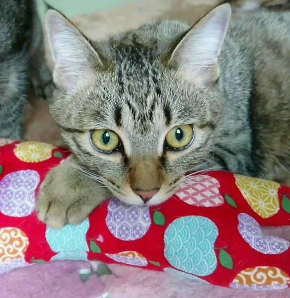 | 特徴(性格など) | 12月1日(日)12:00~16:00(最終申込15:30) ねこざんまい譲渡会に参加予定です! 《会場のご案内はこちら》 https://ameblo.jp/neko3mai/entry-12548561171.html 希望の猫ちゃんがいる場合は、12時に会場へお越し下さい。 先着順ではございませんが、同じ猫ちゃんに複数名のご希望者さまがいらっしゃる場合は、12時半でお見合い受付を締め切らせていただく場合がございます。 ※譲渡会ご来場につきまして、事前予約は不要です どうぞご家族みなさまでご来場下さい♪ ★★★ご来場前に必ずご確認下さい★★★ 《里親様へお願いはこちら》 http://www.neko3mai.com/condition/condition.html 《家族募集中猫ちゃん一覧はこちら》 http://www.neko3mai.com/entrycats/entrycats.html ◆ 名 前 ◆ 琥珀ちゃん ◆ 年 齢 ◆ 約6ヶ月半 ◆ 性 別 ◆ 女の子 ◆性格は?◆ 大きな目が印象的なキジトラの琥珀ちゃん♪ ちょっとクールなお姫様気質の女の子です。 生後4か月近くで保護したので警戒心が強かったのですが、ヘソ天で寝るのが定番になりました。 母猫もヘソ天で寝るので、そっくりです。 遊ぶときは元気いっぱい! ネズミやモフモフのおもちゃが大好きです♡ モフモフクッションに乗ると、すぐ前足でモミモミ・フミフミを始めます。 チャームポイントはちょっと丸いお腹。 遊んでいるとき、コロンと転がって見せるぽっこりお腹に思わず手が伸びてしまいます(*^^*) おすまし顔なのに、そのギャップが可愛いんです♡ 頭とお腹をゆっくり撫でてあげると気持ちよさそうに転がってます。 遊んでいるとき以外で急に体を撫でられるとまだ甘噛みをする時があるので、お尻をゆっくりトントンしてあげるほうが落ち着きます。 抱っこは得意ではありませんが、たまにお尻トントン抱っこをさせてくれるようになりました。 時間がかかるかもしれませんが、温かく見守って頂ければと思います。 ペットではなく共に暮らす家族の一員として、兄妹一緒にお迎えいただけるご家庭を希望しています。 譲渡会はお見合いの場です。 お世話してくださるご家族の皆様、またはご夫婦ご一緒に会いにいらしてくださいね! |