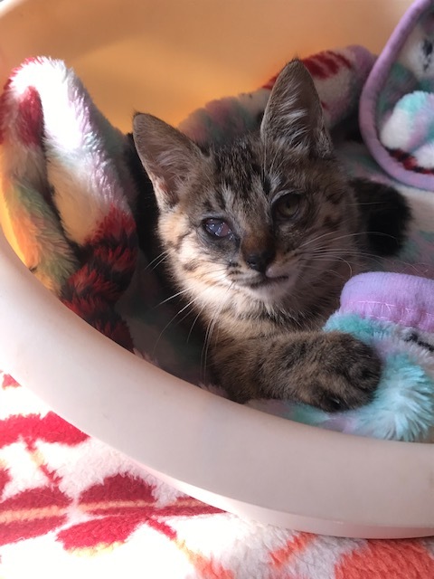 | 特徴(性格など) | 今まで甘えた事が無かったのでとても甘えてくる可愛い子です。虐待され劣悪なとこにいた為、両目が酷い状態ですが治療をしてるので片目は見えるようになります。 | ||