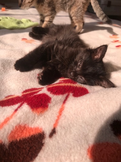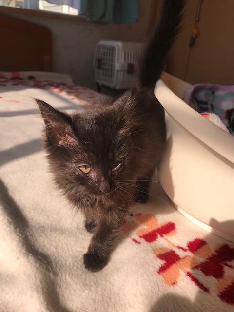 | 特徴(性格など) | 黒の長毛でとても甘えてくる可愛い性格です。虐待され劣悪なとこにいた為、今は目が悪いですが治療をしてるので両目とも見えるようになります | ||