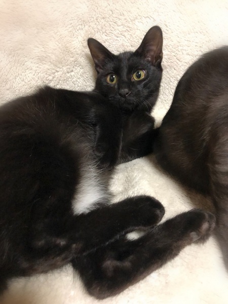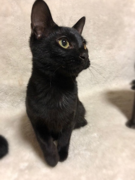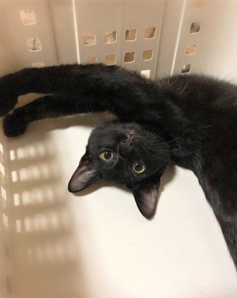 | 特徴(性格など) | 仮名、やまと ぴかぴか黒・かぎしっぽの男の子。 お腹には、白いほわほわの毛がちょこっと。 のびのび過ごせるようになるまで、少し時間が必要です。 何となくのんきな性格で、通院時、車中で緊張していても持続するのが難しいようで、固まる→体勢崩れる→熟睡→揺さぶっても直ぐ起きない。 見ていると、ふふふっとなる子です。 |