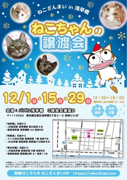 | その他(譲渡条件など) | ★仔猫ご希望の里親様★ 仔猫ちゃんたちは、まだ体がしっかりしていない赤ちゃんです。 下痢だけでも数時間対応ができなかっただけ死に至る事もあります。 その為、月齢に応じたお留守番時間を設けさせていただいております。 また、子猫ちゃん(6ヶ月未満)の里親様には子猫支援金のご協力をお願いいたしております。 ★猫ちゃんとのお見合いは譲渡会で!★ ねこざんまいの猫ちゃんは譲渡会でのお見合いのみとなります。 『この子はいつ譲渡会に参加するの?』『譲渡会場の場所はどこ?』など はねこざんまいホームページをご覧ください。 https://neko3mai.com/ ★楽しく猫ちゃんと触れ合って♪★ ねこざんまい譲渡会は、猫ちゃんも里親様も保護主も笑顔で過ごせる譲渡会を目指しています。 これから20年以上、楽しい時も、悲しい時もいつも傍にいてくれる大切な家族になる猫ちゃんです。 会場には沢山の猫ちゃんがいます。 1匹1匹、触れ合って猫ちゃんとお話ししてください。 『初めて猫ちゃんを家族に迎える方』 『先住猫ちゃんのお友達を迎える方』など トライアルの仕方や先住猫ちゃんと仲良くなるコツなど経験豊富な保護主やスタッフにお気軽にご相談ください! 猫を愛し、そして猫に愛されている猫好きスタッフと保護主がアドバイスさせていただきます。 ★里親希望のみなさまへ★ ペットではなく、家族一員としてたっぷり愛情を注いでくださるご家庭をお待ちしております。 恐れ入りますが、 ・学生の方 ・一人暮らし、同棲中の方 ・子猫、若猫希望の60歳以上のみのご家庭 ・脱走防止対策にご協力いただけない方 は原則お断りさせていただいております。 ただし、預かりボランティアさんとして新しい家族が決まるまでの間、猫ちゃんを預かっていただく道もございます。 参加猫ちゃんは、それぞれ保護主(実際に猫ちゃんを自宅に入れ、保護をしている方)が異なります。 詳しい条件なども異なる場合がございますので、会場内で直接保護主とお話ください。 〖共通条件〗 1.終生飼育 2.完全室内飼い 3.脱走防止対策へのご協力 4.避妊去勢手術 5.契約書類へのサイン 6.定期報告 7.医療費等の負担 当日の猫ちゃんを連れて帰ることはできません。後日、保護主が里親様のご自宅までお届け致します。 その為、移動の際の猫ちゃんの負担を月齢などから考慮し、お届け地区を限定させて頂くこともございますのでご了承ください。 |