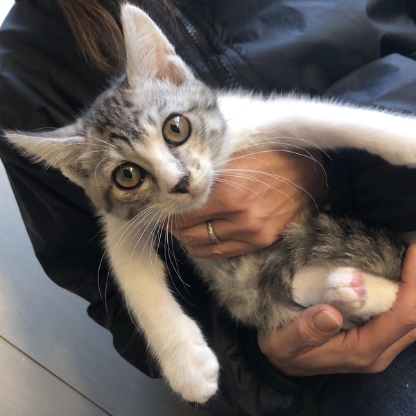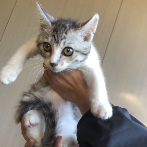 | 特徴(性格など) | やんちゃでご飯をたくさん食べます。 子猫用パウチに粉ミルクを混ぜてあげると「美味しいっ!」と言いながら食べています。 ハンモックが大好き! |