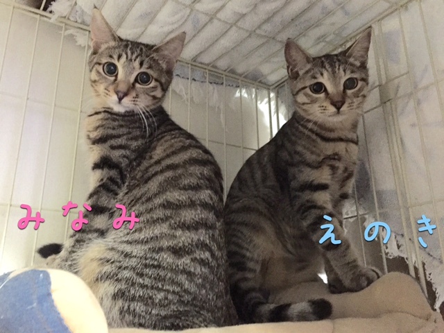 | 特徴(性格など) | おめめくりっくりっの可愛らしいきじとら男子♪えのき ビビリん坊の怖がりさんですが、食いしん坊♪ 好奇心もけっこうあります。最初は撫でようとすると緊張して 固まってしまいますが撫でらるのは好きなようでうっとりする時もあります。 良く食べて良く寝て良く遊び、姉「みなみ」ととても仲よしです。 ふたり一緒だと嬉しいな♪ えのきのペースに合わせて頂き、ゆっくりと接して下さると心を 開いてきます♪ 本当は甘えん坊さんなんです。 ❤尻尾は長くスラッとしています・ ☆ワクチン済 ☆ノミダニ取り済 ☆ウイルス検査(エイズ・白血病)陰性 ☆駆虫済 ☆トイレしつけ済 ☆不妊手術・マイクロチップ挿入済み 推定生年月日:2019年4月頃 |