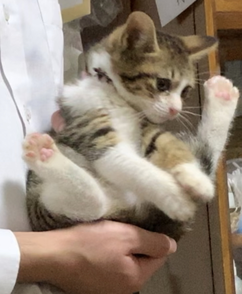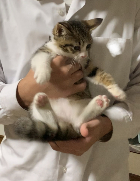 | 里親募集する理由 | 保護猫ちゃんですฅ(^^ฅ) 3日間続いた大雨の日に三日三晩親猫を探して鳴きながら自宅に迷い込んでいました。昼はカラスたちに意地悪されていましたので保護しました。 我が家にはわんちゃんがいるので飼えませんので里親募集致しました。 |