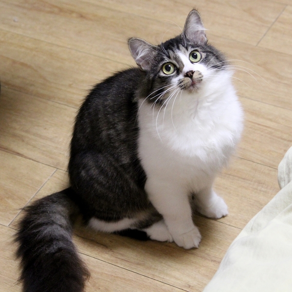 | 特徴(性格など) | 柔らかくて滑らな特上の撫で心地の甘えん坊男子・モッサ、1歳弱です。 超ロングなふっさふさ尻尾とくっきり大きなアーモンドアイ、愛らしいドロボーひげがチャームポイント♪ 優しい性格で従順かつとても温和なお利口さんです。 じゃらし遊びが大好きで元気いっぱい遊びますが、ちょっと鈍くさい?のはご愛敬。 撫で撫で&抱っこが大好きで膝に抱き上げるとヘソ天で甘えながら そのまま眠ってしまう愛らしい性格で、顔を寄せると鼻チュをしてくれます。 ただ、外暮らしの中、怖い経験をしたようで臆病で人見知りをします。 モッサが経験してきた辛かった過去も含めてモッサを家族として迎え入れ モッサが里親さんとの新しい暮らしに慣れるまで大らかなお気持で 愛情を注いでくださる方からのご連絡をお待ちしています。、 ドライ、ウェットフード共に好き嫌いなくあっという間に完食する食欲旺盛な健康優良児で トイレ、爪とぎ、爪切り等の生活面に於いても一切問題がない優等生です。 外では兄妹だと思われる猫達6頭と共に暮らしてきたため、寂しがり屋で 1頭飼育には向きません。(1頭飼育ご希望のご応募はお受けできません) 共に遊び仲良く猫団子で眠れるフレンドリーな若い先住猫さんがいるご家庭か、 今回同時に保護され現在 預かりさん宅にいるモッサの兄弟と共に 迎えてくださるご家庭への譲渡を希望します。 りんちゃん https://www.pet-home.jp/cats/chiba/pn292953/ 銀くん https://www.pet-home.jp/cats/chiba/pn292952/ 鉄くん https://www.pet-home.jp/cats/chiba/pn292950/ 現時点までに済ませた医療処置です。 * ウイルス検査(FIV・FeLV・共にマイナス)済み * 3種混合ワクチン接種済み * ノミ・ダニ、お腹の虫駆虫済み モッサを含めた保護猫達との日々を綴っています。 ↓ ↓ ↓ ブログ「Days with cats」 http://nekorondayori.blog.fc2.com/ |