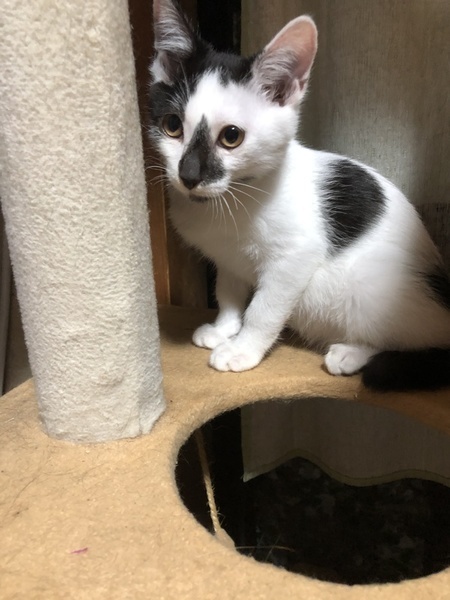 | 特徴(性格など) | 白がベースにお鼻や耳や背中や尻尾に黒が入っている猫です。 | ||