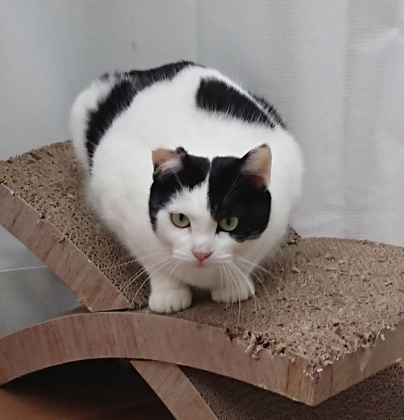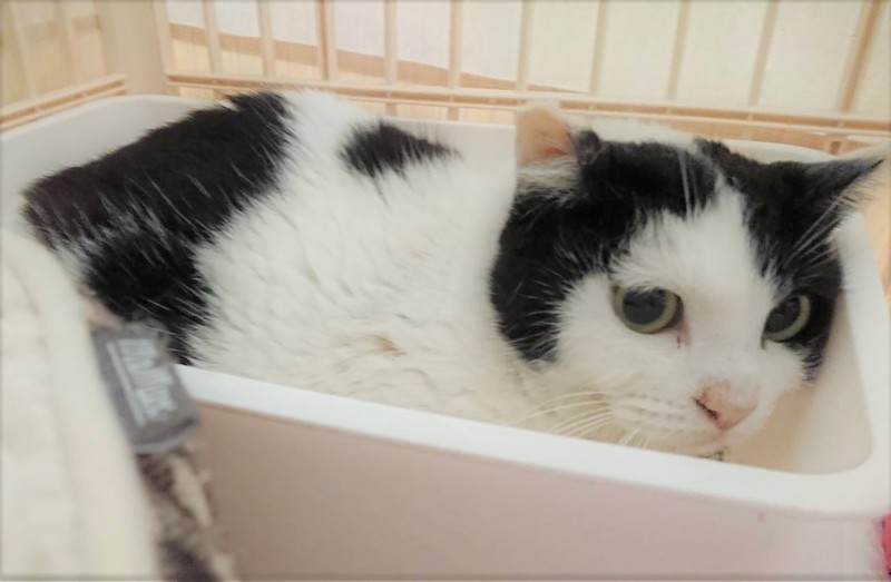 | 特徴(性格など) | ハナ子ちゃん 推定3歳位 ♀ 白黒 エイズ・白血病ウイルス検査 共に陰性 便検査陰性 ワクチン接種済み ノミダニ駆除済み トイレしつけ済み 性格:ケージの中では懐っこくてゴロゴロ言っていますが、ケージから出すと怖がっているのかあまり触らせてくれません。 昼間はフリーにして、夜は自らケージに入るので、閉めて寝ています。 2段、もしくは3段のケージをご用意頂き、ハナ子ちゃんのペースに合わせてゆっくりとお付き合い下さるお家とのご縁をお待ちしています。 |