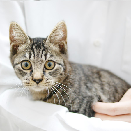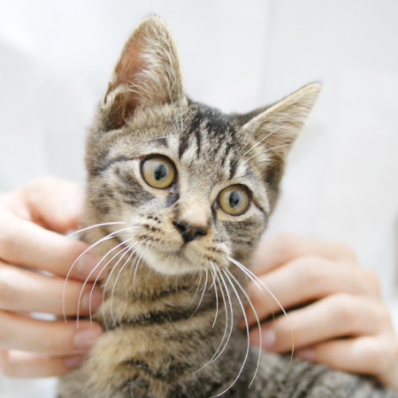 | 特徴(性格など) | 名前はポンズです 何にでも興味津々、なぜか爪とぎの上に座るのが好きな子です。 ポンズ&そっくり兄弟のコチョはいつも一緒に行動していてご飯を食べる時もお水飲む時も一緒です。 なでられるのが大好きでひっくり返ってゴロゴロします。 部屋の中をかけまわるのが大好きで 朝も夜中もみんなで運動会してます。 私が仕事から帰ってくると扉のところでお出迎えしてくれます。 フードの好き嫌いもなく 食欲旺盛で ひとつのお皿でウェットフードをあげると前足でお皿の取り合いをしています。 先住猫のフードも横取りしちゃったりも・・・ 先住猫のしっぽにじゃれるのが好きでしつこいと怒られてます |