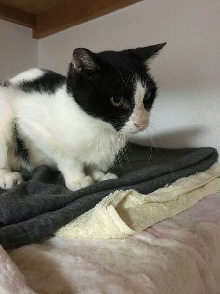 | 特徴(性格など) | 白黒ハチワレ 左後ろ足ケガ |