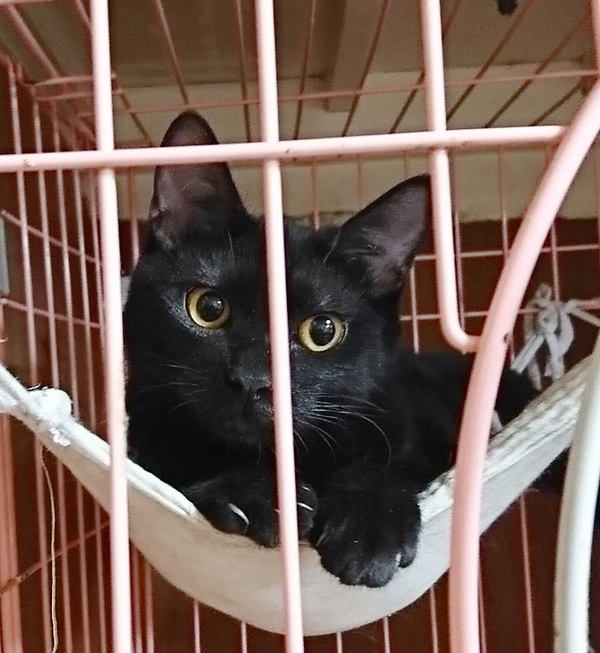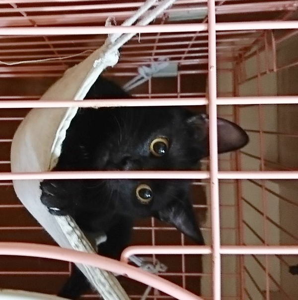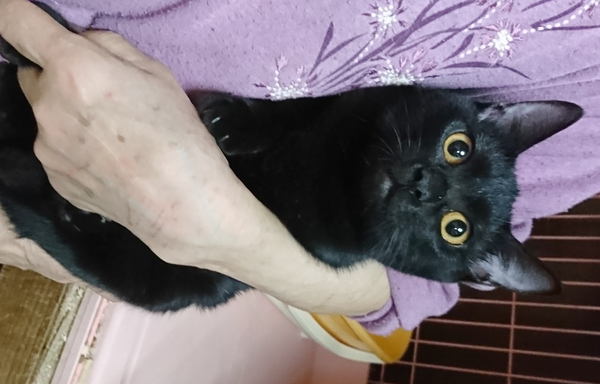| 特徴(性格など) | 黒猫の女の子。(しっぽは長め) ちょっと怖がりで人見知りをするので初対面の人には”シャーッ”と言ってしまいますが、慣れると抱っこも出来るようになり、とってもかわいい子です♪ 最初、慣れるまでは少し時間がかかったとしても、長い目で見て接してくださる優しい里親さん、探しています。 |