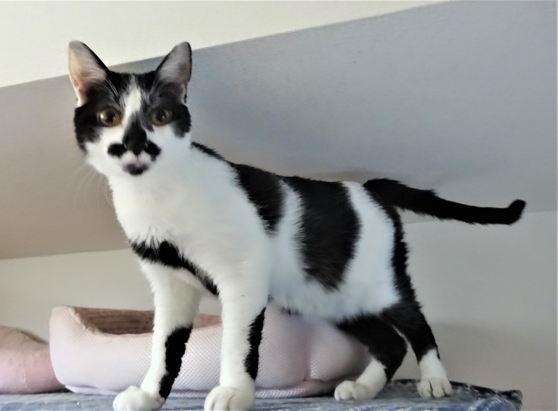 | 特徴(性格など) | 仮名: ゆうくん(オス) 毛色: 黒白ブチ、尻尾長い 性格: 人も大好き、ご飯も大好き、じゃらしで遊ぶのも大好きです。 毎日、楽しく、元気に遊んでいます。他猫と遊び、猫社会の学習もしているようです。普段はケージにいますので、人が来ると喜んで迎えてくれます。 抱っこも平気だし、スリスリ甘えん坊です。 のみ取り済 検便済 駆虫済 3種混合ワクチン済 猫白血病ウィルスは陰性 猫エイズウィルスは陽性です。(遺伝子検査の結果、陽性は確定しています) |