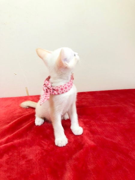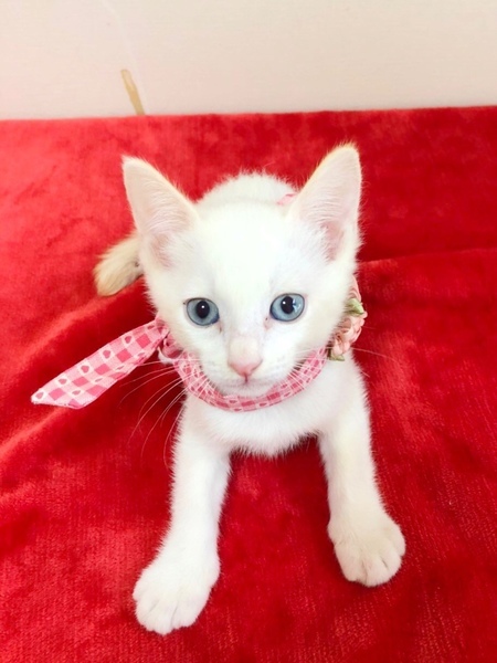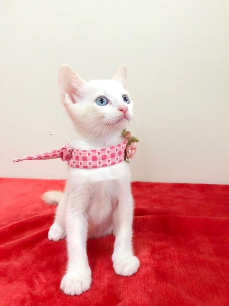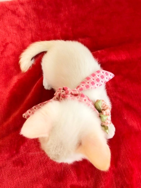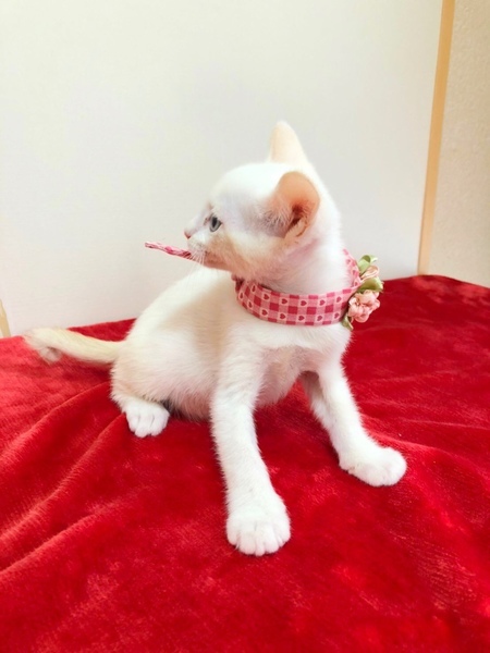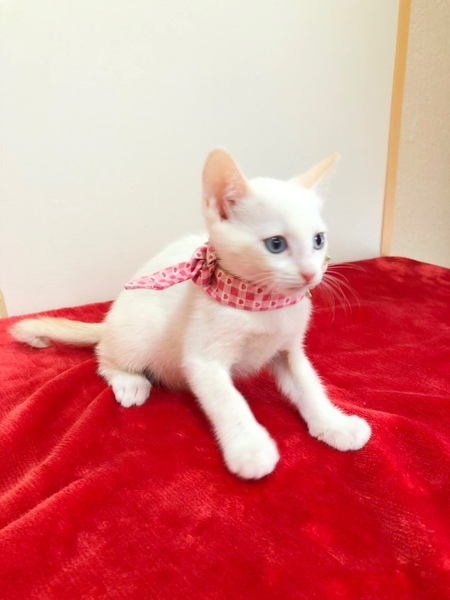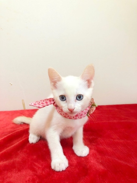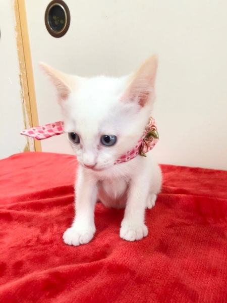| 特徴(性格など) | 真っ白できれいな女の子です。おっとりマイペースタイプです。ミルクで預りさんに育ててもらったので、人なつこいです。かわいいミルキーちゃんに会いにきてください。 | ||