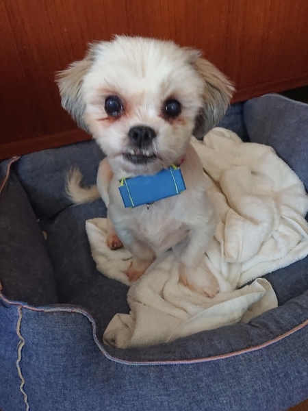 | 特徴(性格など) | ■特徴(仮の名前:ランラン) シーズーマルチmix♀ 推定5~6歳 3.4kg ■性格・暮らし ・怖がりですが、馴染めば甘えん坊です。 ・明るく朗らかな性格です。 ・犬同士はソツなく接することが出来ます。 ・ケージはあまり好きではありません、フリーでも問題はありません。 ・トイレはほぼ問題ありません。 ・体のどこを触っても大丈夫です。 ・お散歩はトレーニング中 ■今までに行った医療行為 ・健康チェック (11/6) ・血液検査 (11/6) ・フィラリア検査(陰性) ・検 便 (11/6) ・マイクロチップ装着(11/4) ・狂犬病予防接種(11/5) ・避妊手術(11/27) ・6種混合ワクチン(11/27) ・歯科処理(11/27) ■今後行う予定の医療行為 ・特になし |
