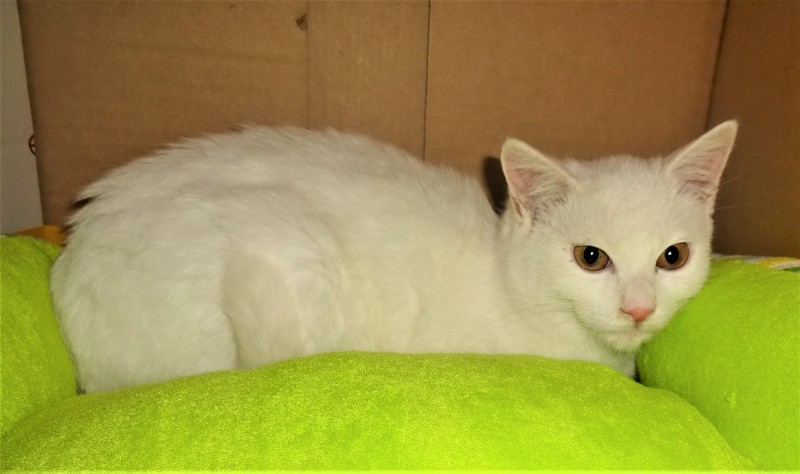 | 特徴(性格など) | 仮名: ハクくん(オス) 毛色: 白、 尻尾長い 性格: とにかくビビリで、ケージの奥に籠っていますが、触ったり抱っこしたり出来ます。 怖がりながらも、嫌ではないようですし、人も大丈夫のようです。 ケージを開けっ放しにしていると、知らないうちに出ていますが、猫同士で遊んでいるという感じでなく、一緒にそばにいるという感じです。 ケージは好きみたいなので、2-3段のケージをご用意くださり、じっくりと時間をかけて馴らしてくださる猫経験者の方が良いかなと思います。ほとんど鳴かず大人しくしています。毎日撫でていますが、撫でる手で遊ぼうとします。 ノミ取り済 検便済 駆虫済 3種混合ワクチン済 猫エイズ・白血病ウィルス検査はともに陰性 |