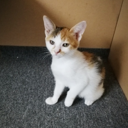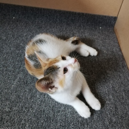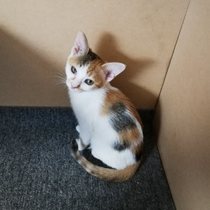 | 特徴(性格など) | 三毛、長いしっぽ。 人懐っこくい女の子。 ちょっぴりシャイなところがあります。 エイズ・白血病どちらも陰性。 |