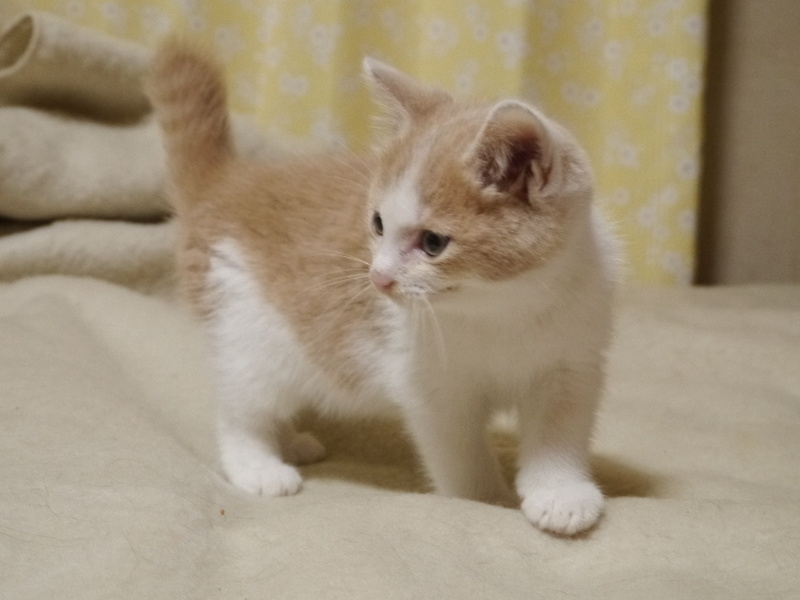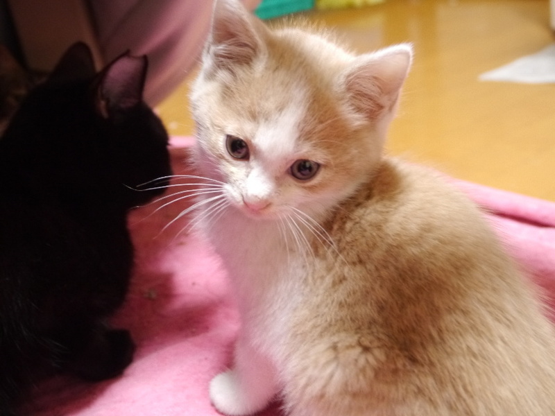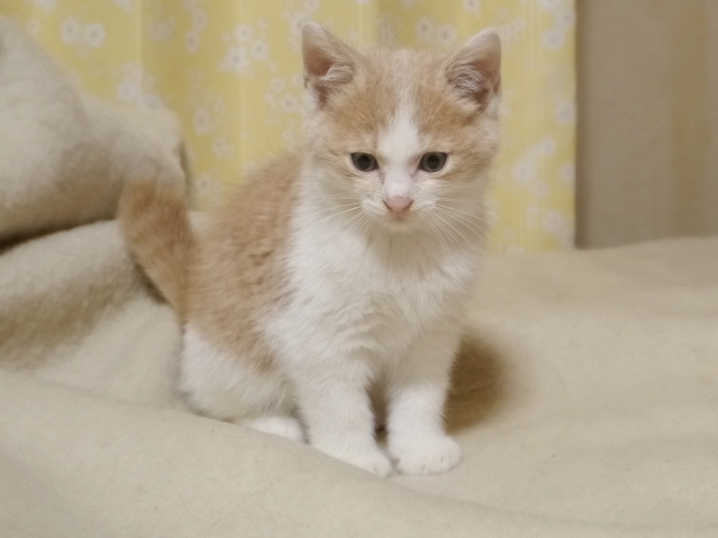 | 特徴(性格など) | 薄いベージュと白色の毛色 フワフワでモコモコした男の子です 母猫が人慣れしていたため、人から逃げることなく成長しています 子猫用の小さめの粒のドライフードが食べられるようになりました 兄弟と走って遊んでいます |