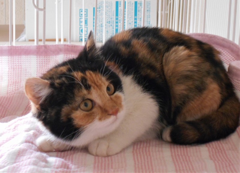 | 特徴(性格など) | 【猫の仮名】 紅葉(もみじ) 【毛色・柄】 三毛(担当 桂) 毛がふわふわ。 顔デカ、鼻が低く、普通の子猫と少し違っています。 撫でると、のどをゴロゴロ言わせて甘えてきます。 甘ったれですが、少し臆病です。 |