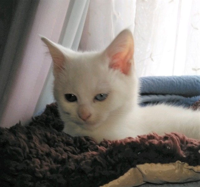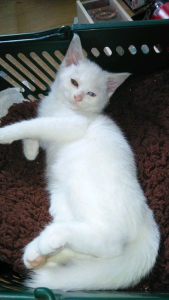 | 特徴(性格など) | 【猫の仮名】 シロ 【毛色・柄】 まっ白(担当 桂) 抱っこが大好きで、のどをゴロゴロ鳴らします。 人慣れしていますが、性格は少し臆病です。 |