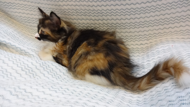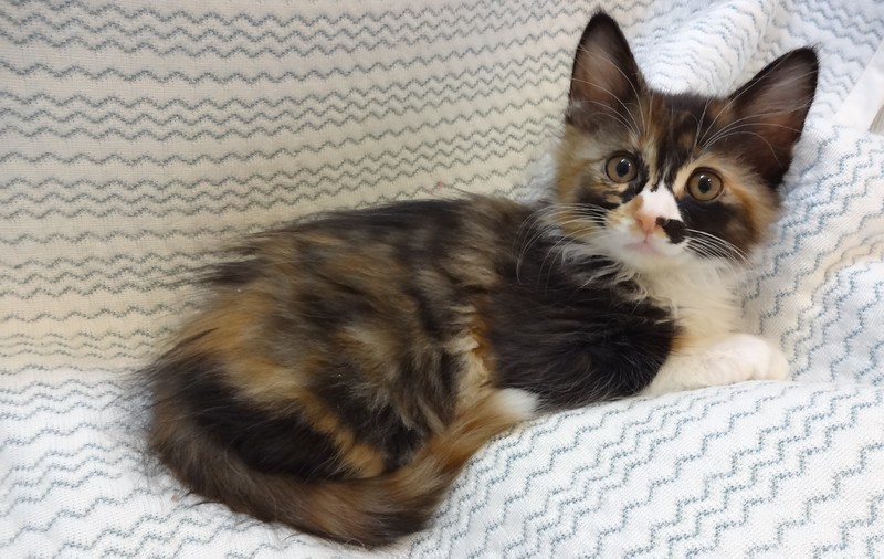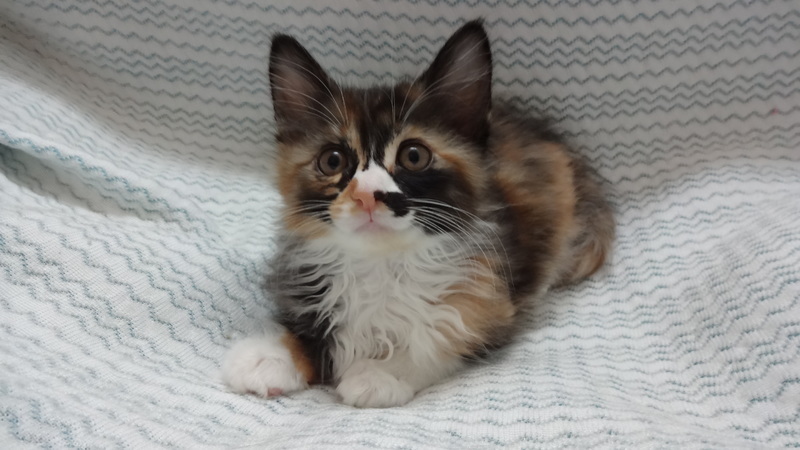| 特徴(性格など) | 【仮名】だるまちゃん 【性格】フワッフワで飛んでいきそうなだるまちゃん♪ 珍しい長毛三毛かつ容姿端麗とスキのないにゃんこです(笑) まぁ三毛猫のわりには穏やかな性格です(^^) ちょっと臆病なところはご愛敬♪ おもちゃを出すと駆け寄ってきて可愛らしいしぐさを見せてくれます(*´ω`*) 甘えん坊になる要素も持っている仔なので成長が楽しみです♪ 兄妹のひなたくんとのお迎えを希望します。 幼い月齢ですので、お留守番時間がない、もしくは少ないご家族に託したいと思います。 |
