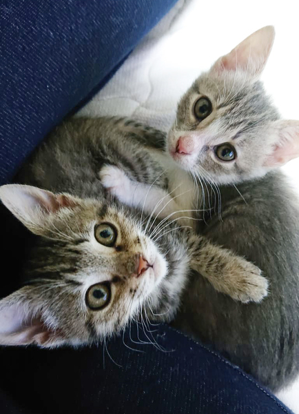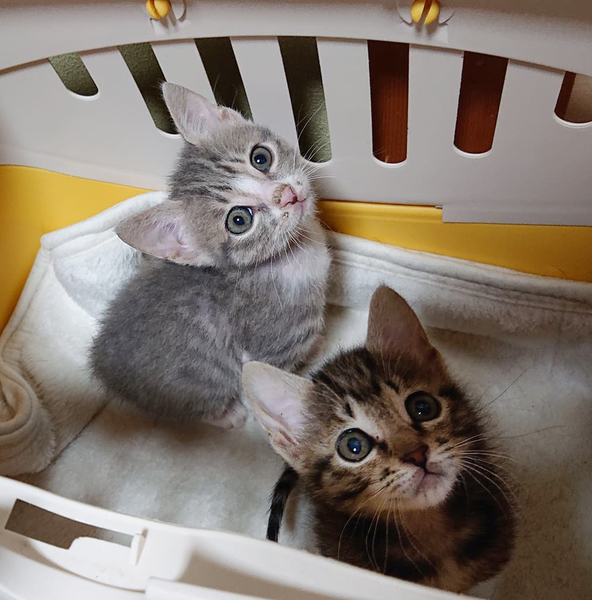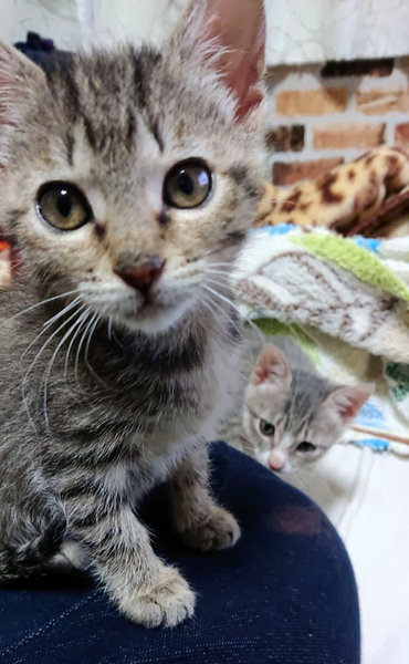 | 特徴(性格など) | グレー色ぽい子とキジトラの2匹の女の子です。 未熟児でしたが 無事元気に育ちました。 駆虫済み・ワクチン接種済みです。 |