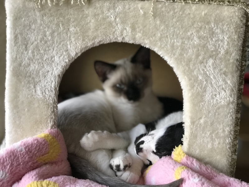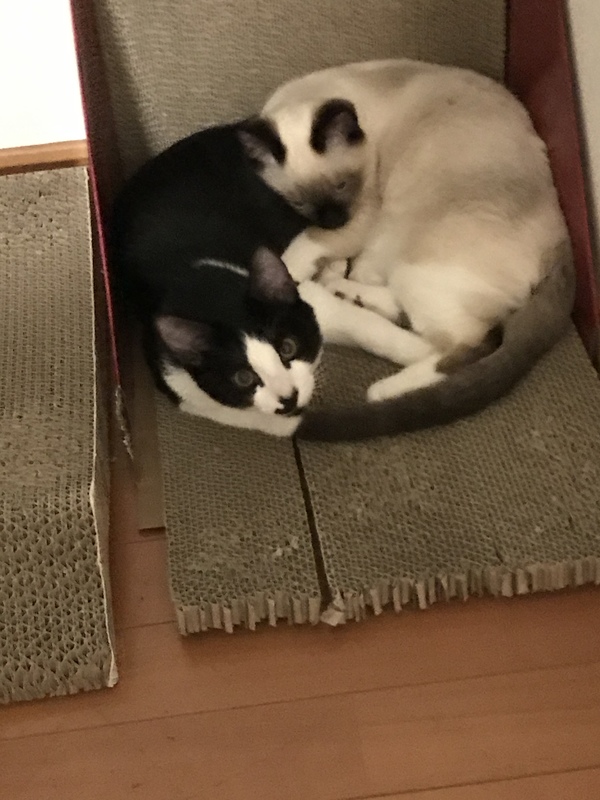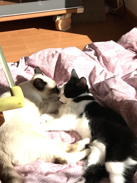 | 特徴(性格など) | 兄猫は白黒ハチワレ、とても活発で甘えん坊です。妹猫はシャムmixでふわふわ癒し系、こちらも甘えん坊です。 2匹とても仲良しさんです。 |
