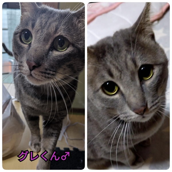 | 特徴(性格など) | グレーの毛をした子です。 5kgくらいはあって大きいですが 甘えん坊で布団で寝るのが大好きです。 犬に威嚇しなかったのは驚きました。 |