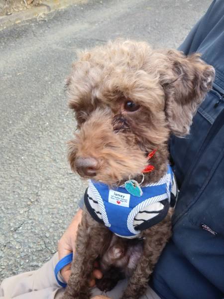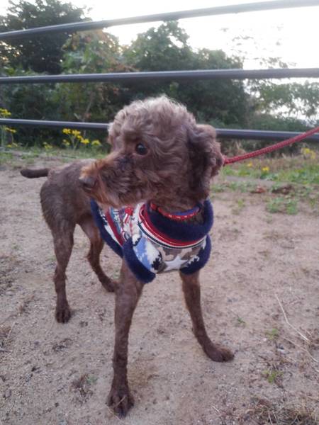 | 特徴(性格など) | 人が大好き甘えん坊なのに、人に吠えるので強制中。犬・猫大丈夫。 フードやおやつを手からゆっくりと食べれるようになりました。 リードの引きがまだあるので、躾がしっかり出来る方。血液検査問題なし。 |