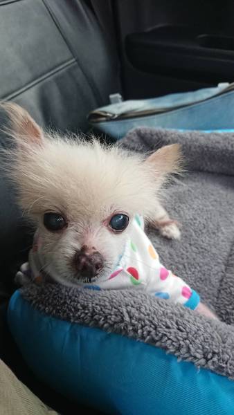 | 特徴(性格など) | 体重 2キロの小さな男の子です 保健所に収容されたとき 全身 皮膚病で、皮膚が真っ赤になり 毛も抜けていました 保護して病院に連れていき 栄養と皮膚のケアで少しずつ改善されてます 他には問題なく元気ですが 昔、脱臼の手術をしたのか、後ろ足が少し弱いので、お散歩で走らせたりはできません |