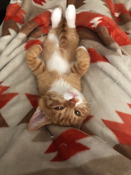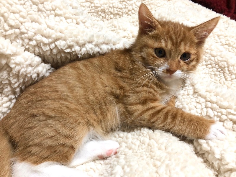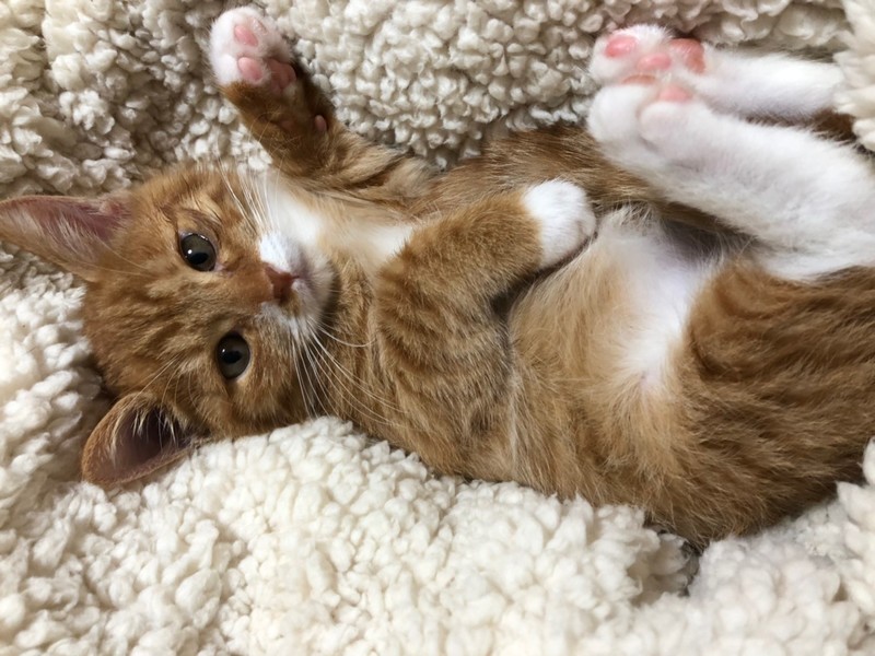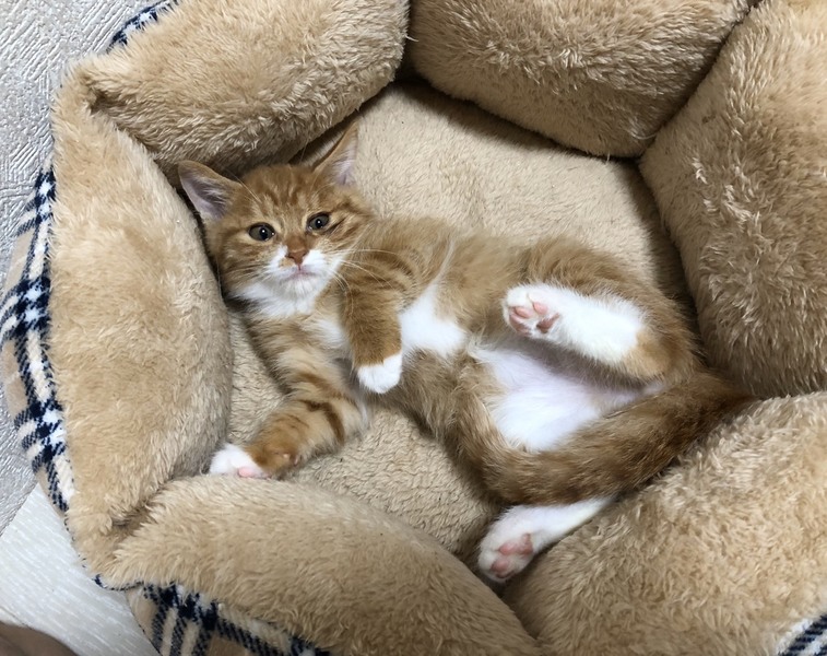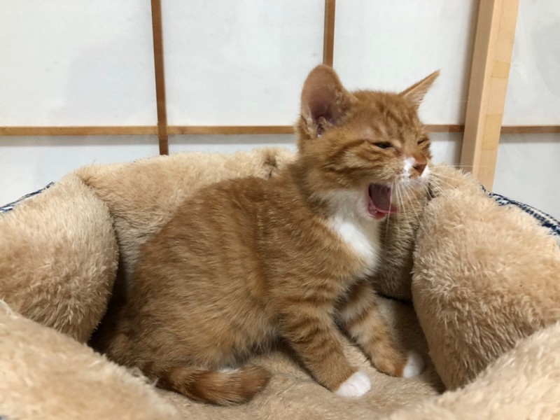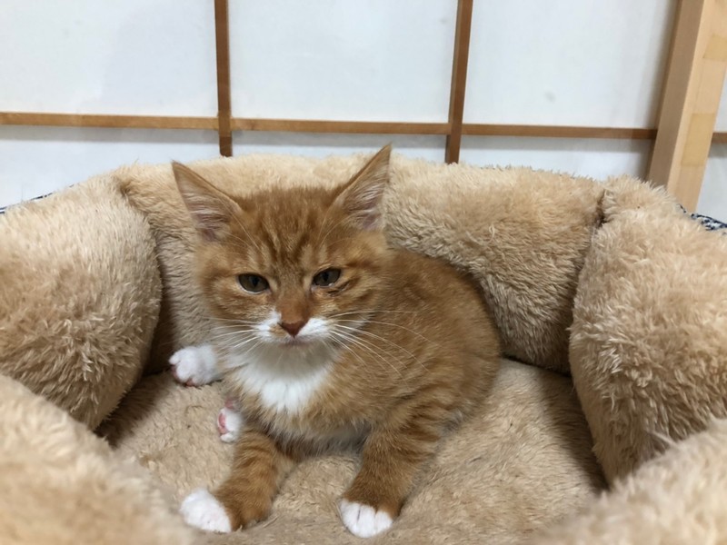 | 特徴(性格など) | 2019.9.1生まれ 毛色:茶トラ お口まわりと足先、お腹に少し白が入ったほんわか真ん丸フェイスの茶トラ男子のちくわ君。 大きな瞳で見上げられると、ギューーーっと抱きしめてあげたくなります♡ 慣れない場所では兄弟の後ろに隠れてしまう、ちょっぴりビビリな性格ですが、猫さんは大好き!! 大きな猫さん相手でも、しっぽを追いかけて遊びます。 1匹だけよりも、兄弟一緒でのお迎えや先住さんがいるお家向きです。 兄弟猫のなると・たまごもよろしくお願いします☆ |