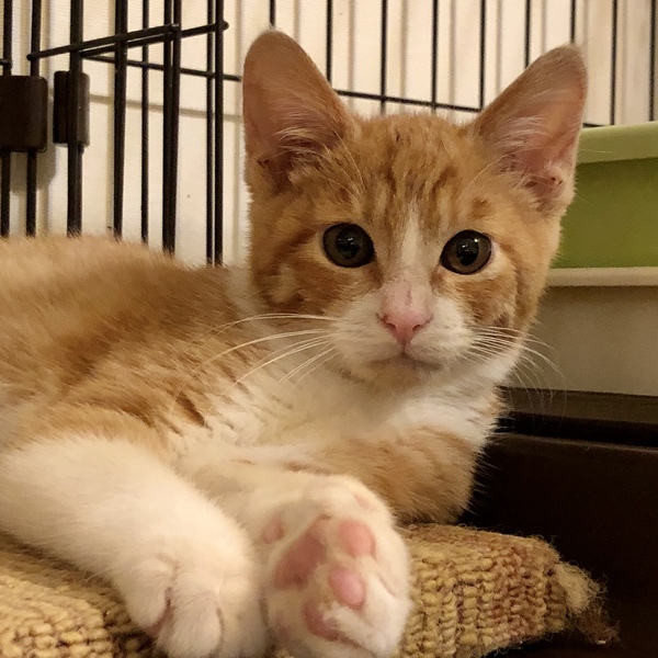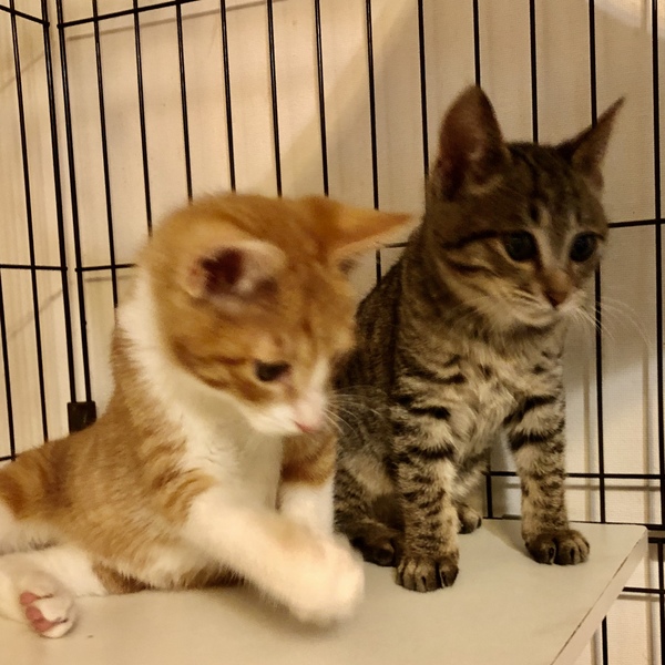 | 特徴(性格など) | 仮名えがお 茶白オス4カ月くらい むっちりボディに真っ直ぐ尻尾のハンサムボーイです 保護時点で生後3カ月くらい、すぐにスリゴロになりましたので元は飼い猫だったのでしょう。 元気いっぱいわんぱく坊主です。 猫は大好きで預かり宅の先住猫たちにも手を伸ばして鼻クンクンしてすぐにご挨拶します。 やっぱり遊び相手が必要かと思いますのでこちらの子猫(キジトラのチビ助とは仲良しです)とペアで迎えていただくか、若い元気な先住猫さんのいるお家にお願いしたいと思います。 健康状態 とても健康で元気です 去勢手術 ウイルス検査(エイズ・白血病)陰性 ワクチン(2回) 駆虫 検便 シャンプー 爪切り |
