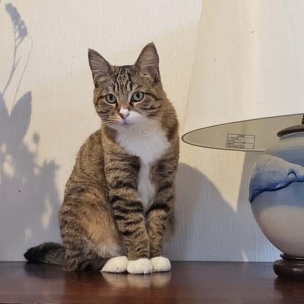 | 里親募集する理由 | 餌やりの帰り道突然自転車の前に現れ、自転車を見ると毎日現れるようになりました。避妊手術をして元の場所に戻す予定でしたが、あまりにも人に慣れているので保護しました。 | ||