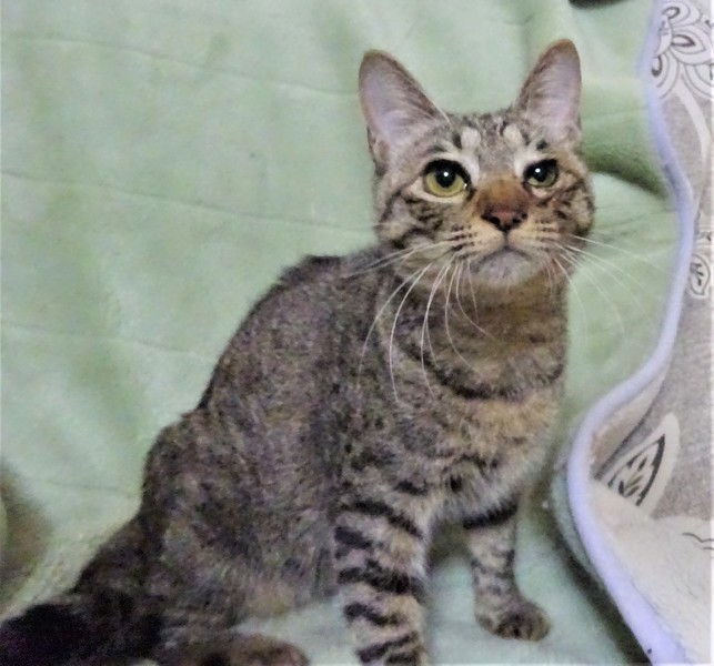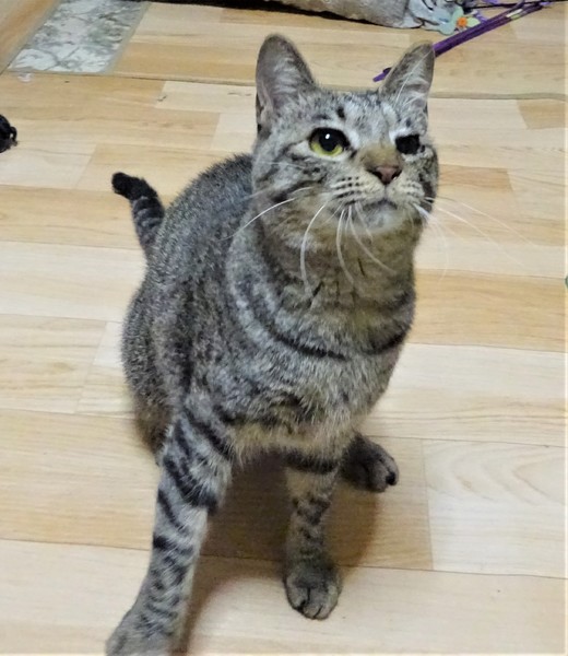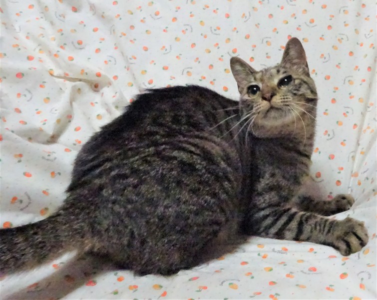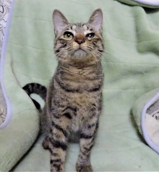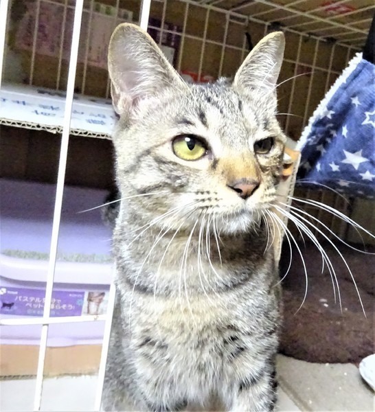 | 特徴(性格など) | 仮名: ミチルちゃん(メス) 毛色: キジトラ、尻尾長い 性格: 大人しく、肩に乗ったり、スリスリの甘えん坊です。 威嚇なく抱っこ出来、他の猫とも普通に付合えます。 抱っこが好きなので甘えさせて下さるご家庭が良いです。 小さい頃の風邪が原因で、瞬膜が癒着しましたので、避妊手術を受ける時に目の手術もしましたが、完全には治らず、2回目の手術をしました。 片目は良くなりましたが、片目はまだ少しショボショボしています。見えているので大丈夫です。 ノミ取り済 検便済 駆虫済 3種混合ワクチン済 避妊手術済 猫エイズ・白血病ウィルス検査はともに陰性 |