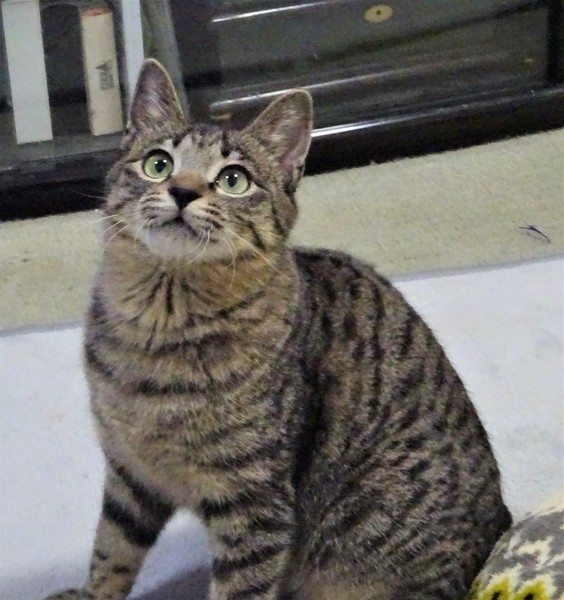| 特徴(性格など) | 仮名: ルイ君(オス) 毛色: 黒っぽいキジトラ、尻尾短め 性格: 威嚇はしません。 抱っこも出来ますが、今は遊び優先のようです。3兄弟なので、誰かと一緒のお家に行けると嬉しいです。 他の大人猫がいてもあまり関心はないようで、喧嘩もないけど、一緒にプロレスという事もありません。 じゃらしに燃え、獲物を咥えるとうなってしまいます。 良く走り、ジャンプしています。 ノミ取り済 検便済 駆虫済 3種混合ワクチン済 去勢手術済 猫エイズ・白血病ウィルス検査はともに陰性 |
