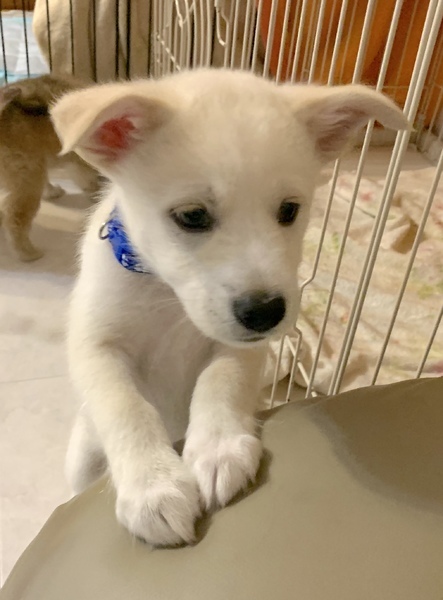 | 特徴(性格など) | おかゆくん(仮名) ・ミックス子犬の男の子 ・年齢 生後1.5ヶ月くらい ・体重 1.8㎏(12/10現在) ・便検査 済 ・混合ワクチン 接種予定 ・避妊手術、マイクロチップ装着予定 とっても元気でフレンドリーな男の子。 人も犬も大好きで、仮宿では大きい犬とも元気に遊んでいます。 好奇心がとても旺盛な子犬なので、いろんなモノに興味があり、いろんなものを口にします。 また、とてもすばしっこいので、大切な命を守るために、脱走防止の扉や柵などの設置を必ずお願いいたします。 お留守番時の悪事・誤飲を避けるためにも、お留守番の無いご家庭、お留守番時間の短いご家庭への譲渡とさせていただきます。(フルタイム不可) お留守番時間は、主にお世話をされる方の外出時間です。 また、親犬が分からないため将来の大きさは分かりません。 なので、飼育に関して規定のある住宅にお住まいの方への譲渡は控えさせていただきます。 現在他の犬たちと共に過ごしております。 ひとりになった時や、夜中に夜鳴きなどがあるかもしれません。おおらかな気持ちでお迎えください。 甘えん坊でとても愛らしい男の子です。 まだまだ覚えなければいけないことがたくさんありますが、これからの長い犬生、おかゆくんを生涯大切な家族として守ってくださり、愛情をいっぱい注いでくださる本当のご家族様をお待ちしております。 |